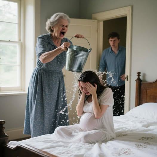 Het geluid drong al vóór de schok. IJskoud water gutste over Olivia Bennetts lichaam en kleefde aan haar pyjama, haar haar en de lakens onder haar. Ze snakte naar adem, rechtop zittend, gedesoriënteerd en doodsbang. Haar handen trilden terwijl ze het water uit haar ogen veegde en knipperde, elk naar de vrouw met een lege metalen emmer – haar schoonmoeder, Eleanor Bennett.