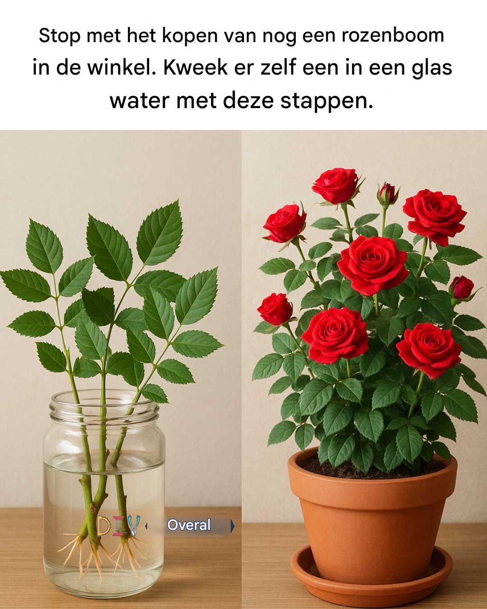 Rozen worden al lang gekoesterd om hun schoonheid en geur, waardoor ze een populaire keuze zijn voor zowel tuinen als bloemstukken. Het kopen van rozenbomen in de winkel kan echter duur zijn, en soms gedijen de planten niet zoals verwacht. Gelukkig is er een lonend alternatief: zelf thuis je eigen rozenboom kweken met een eenvoudig glas water. Deze methode bespaart niet alleen geld, maar stelt je ook in staat om een ​​rozenboom te kweken die helemaal van jou is, van de allereerste wortel tot de bloeiende bloem.