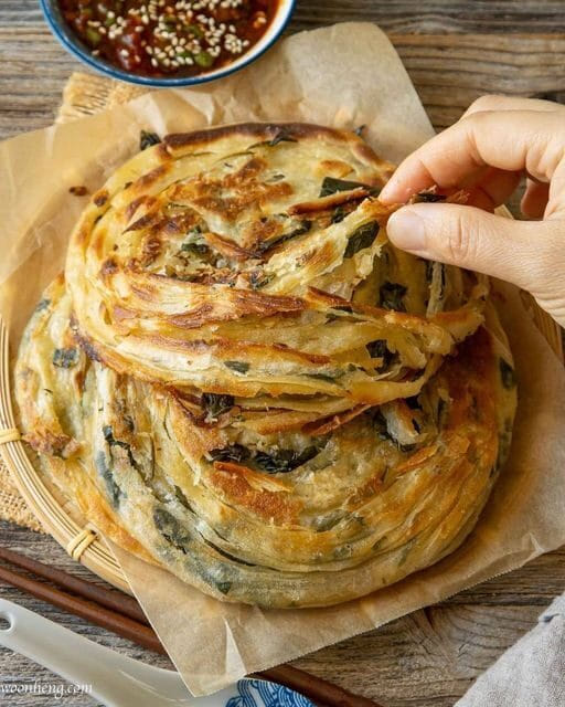 Een heerlijke en aromatische gevulde pannenkoek, perfect als snack of bijgerecht. Deze « Bing » combineert een zacht deeg met een smaakvolle Thaise basilicumvulling voor een unieke smaaksensatie.