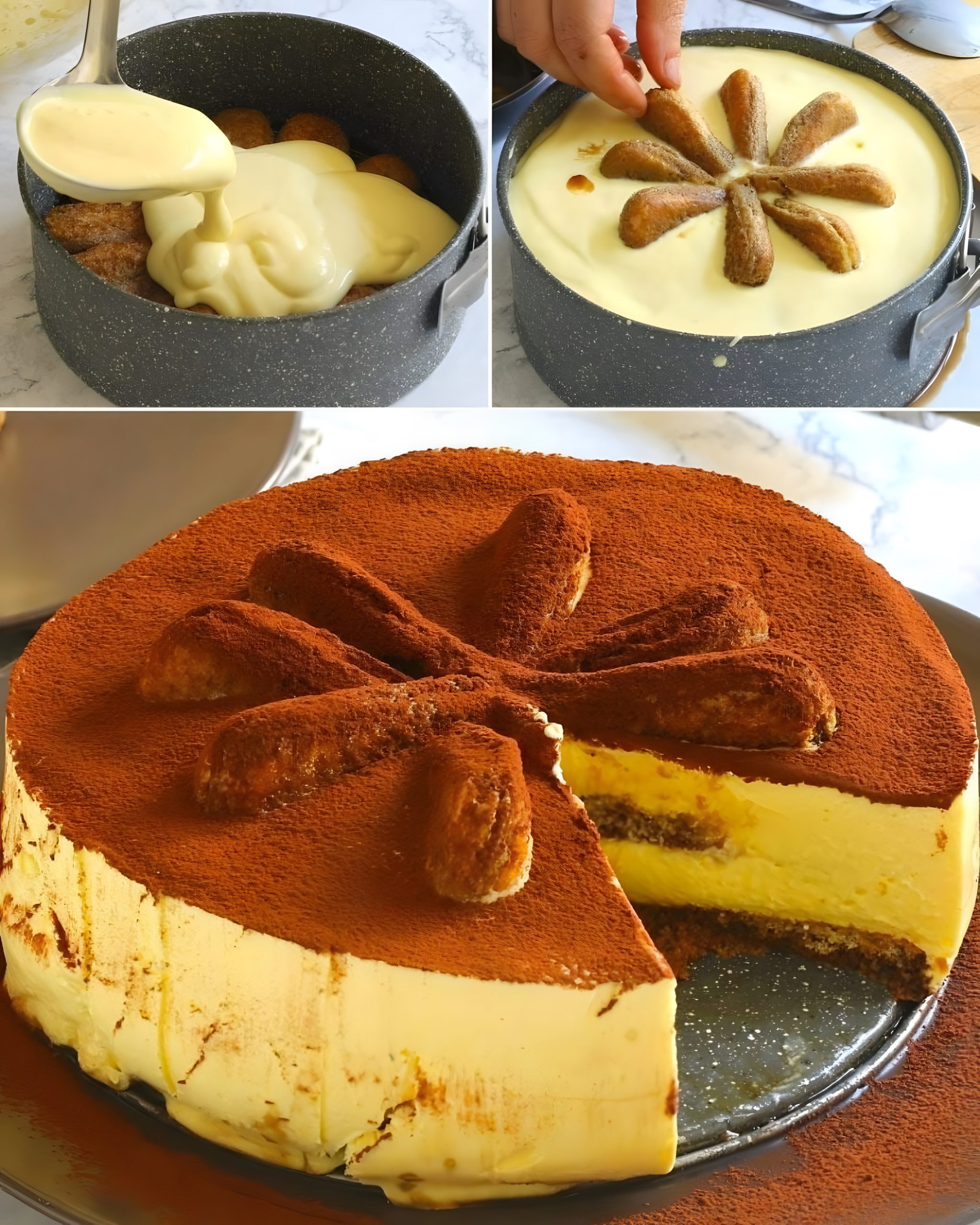 Deze tiramisu cheesecake combineert het romige, fluweelzachte karakter van cheesecake met de iconische smaken van tiramisu. Een koude, no-bake cake met een basis van lange vingers gedrenkt in koffie en een luchtige mascarpone-crème. Perfect voor een speciaal diner of feestelijke gelegenheid!