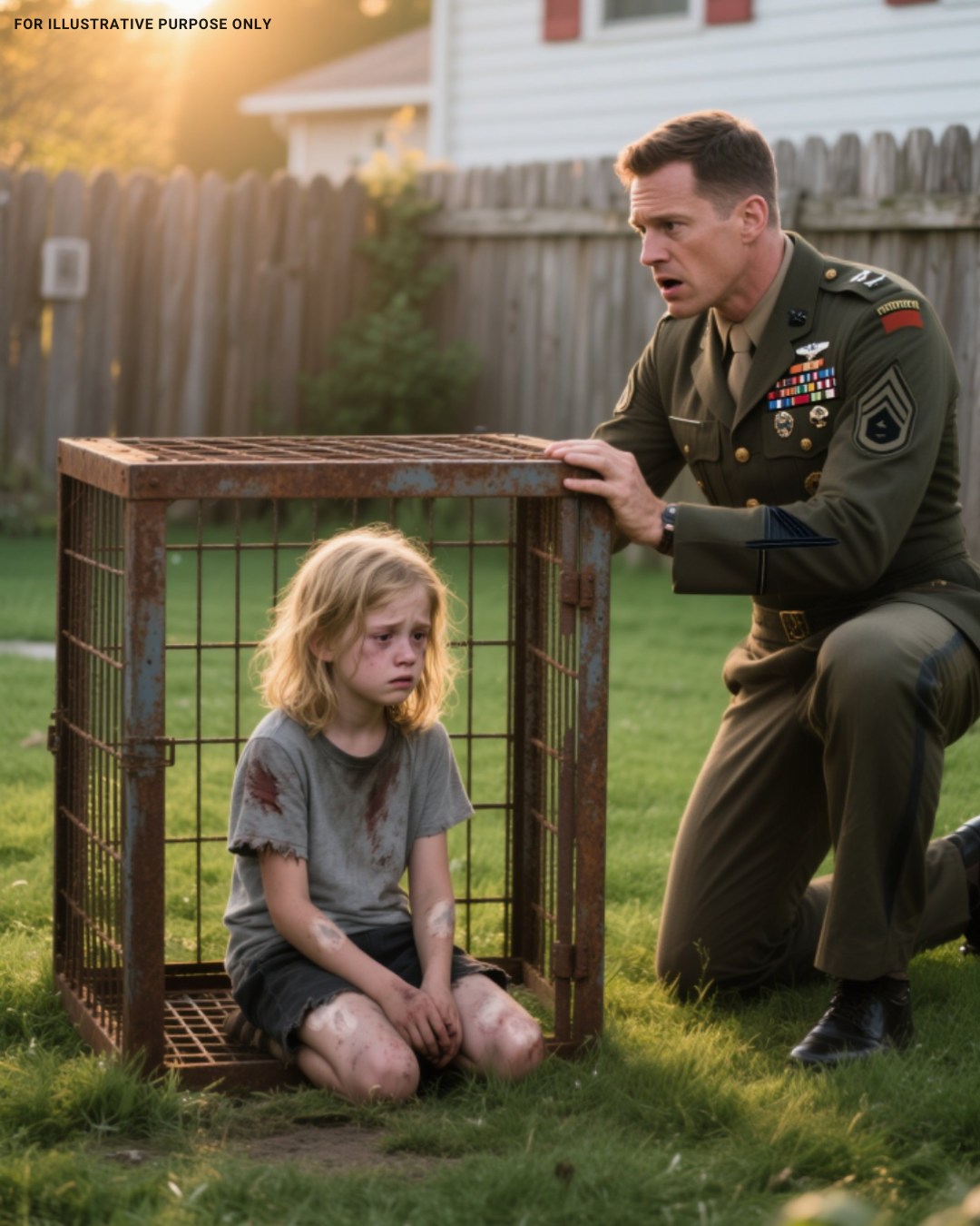 Toen ik thuiskwam van een missie, trof ik mijn zesjarige dochter opgesloten aan in de schuur in de achtertuin – zwak, trillend, haar huid getekend door rode striemen. « Papa, » fluisterde ze, « de vriend van mama zei dat stoute kinderen hier slapen. »