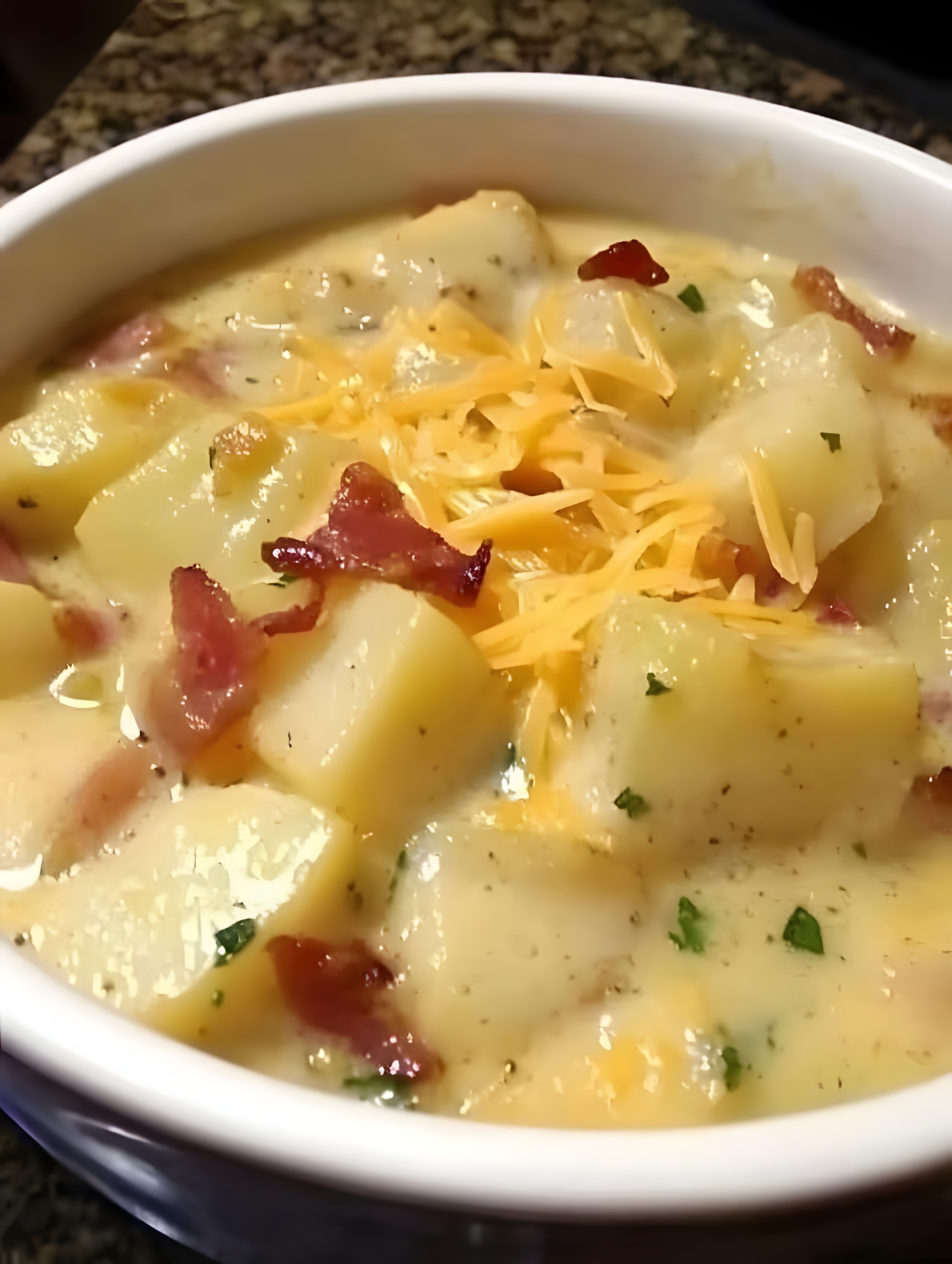 Er is niets troostrijkers dan een kom rijke, kaasachtige aardappelsoep, vol met knapperige bacon en warme, romige goedheid! 😍 Deze hartige soep in restaurantstijl is gemakkelijk te maken en perfect voor koude avonden! πŸ‚πŸ₯„ Een echte oppepper voor de ziel! ❀️