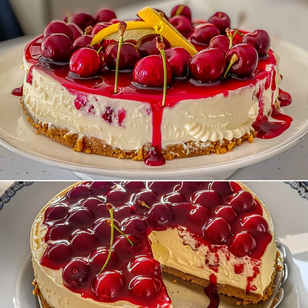 Deze verfrissende kersen-citroen cheesecake is een licht, heerlijk dessert dat de romigheid van cheesecake combineert met de fruitige frisheid van kersen en citroen. Perfect voor de zomer of elke gelegenheid waar je iets fris en lekkers wilt!
