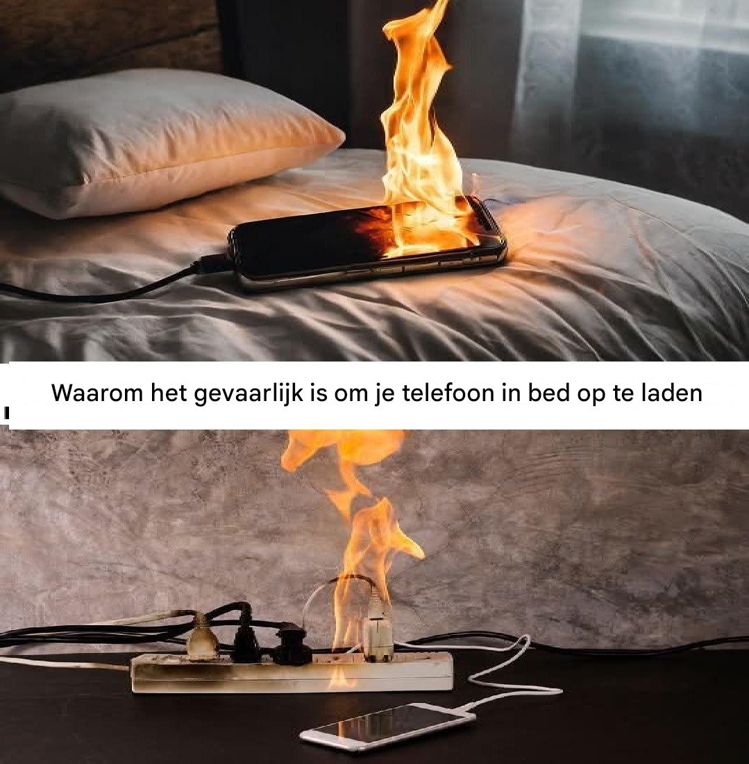 Er zijn talloze gevallen gemeld van branden veroorzaakt door telefoons die op bed werden opgeladen. Deze incidenten doen zich vaak ‘s nachts voor, terwijl de gebruiker slaapt en zich niet bewust is van het gevaar. In sommige gevallen hebben deze branden aanzienlijke materiële schade en zelfs verwondingen veroorzaakt.