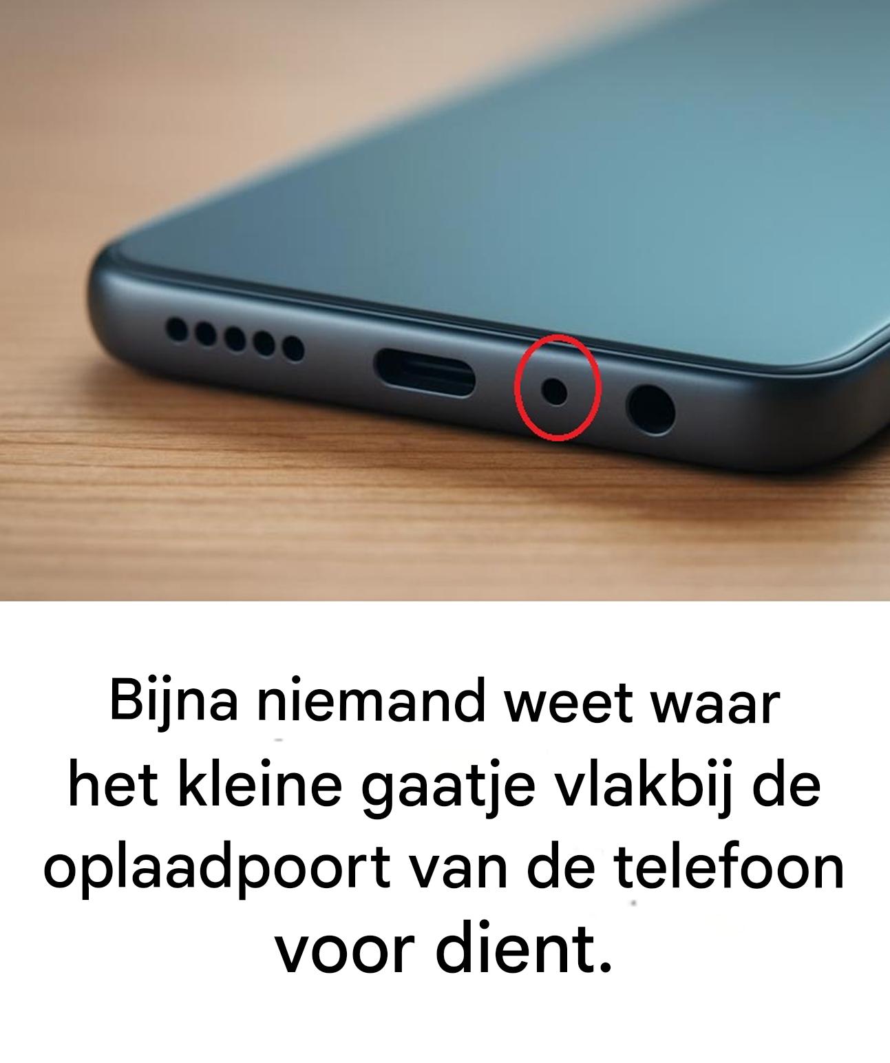Wat is het doel van het kleine gaatje naast de oplaadpoort op een smartphone en waarom is het zo belangrijk?
