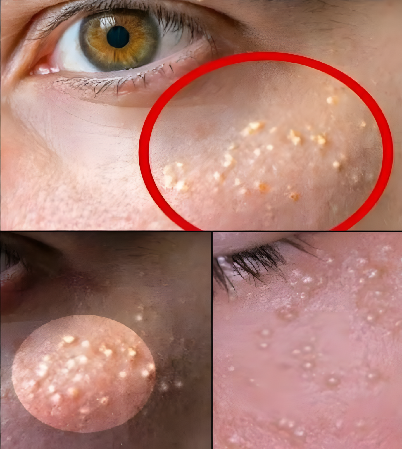 Dit zijn kleine, witte cysten die ontstaan wanneer dode huidcellen onder de huid vast komen te zitten. Ze komen vaak voor in het gezicht (vooral rond de ogen en wangen).