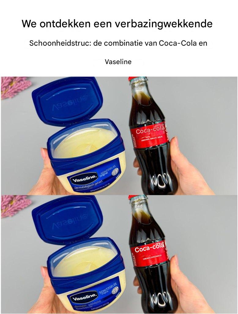 Coca-Cola en Vaseline: twee verrassende bondgenoten. Het toevoegen van Coca-Cola en Vaseline aan je huidverzorgingsroutine maakt je huid niet alleen interessanter, maar biedt ook talloze schoonheidsvoordelen: