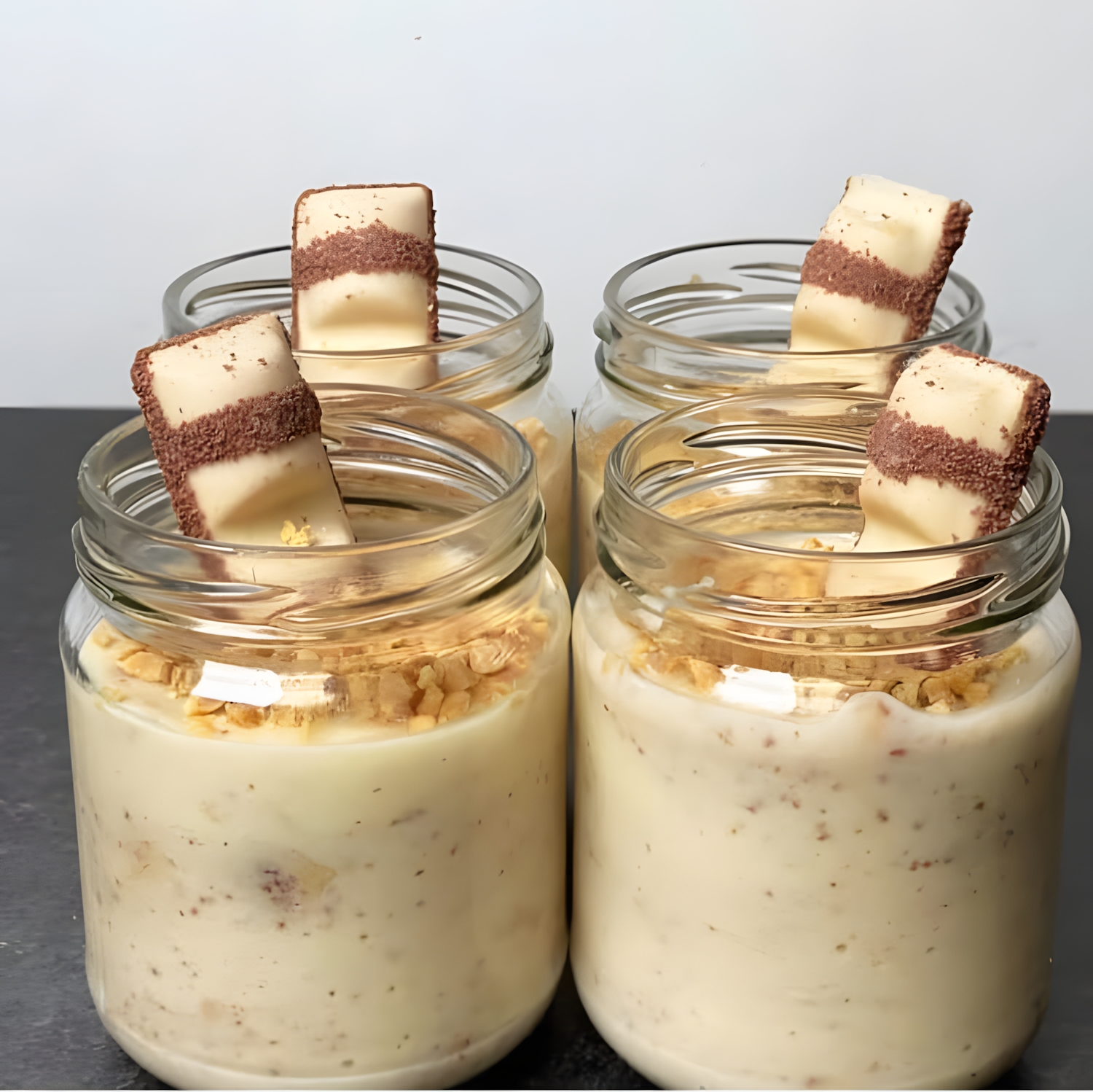 Laat je verleiden door dit frisse en knapperige dessert dat de rijke zoetheid van witte chocolade combineert met de onweerstaanbare crunch van Kinder Bueno en geroosterde amandelen. 😋 Een hemelse traktatie die net zo romig als bevredigend is, perfect voor iedereen met een zoetekauw! 🍬✨ Dit is het dessert waar je altijd al van hebt gedroomd! 💭💖