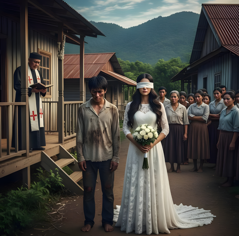 Na de ceremonie gaf haar vader haar een klein tasje met wat kleren en duwde haar weer naar de man.