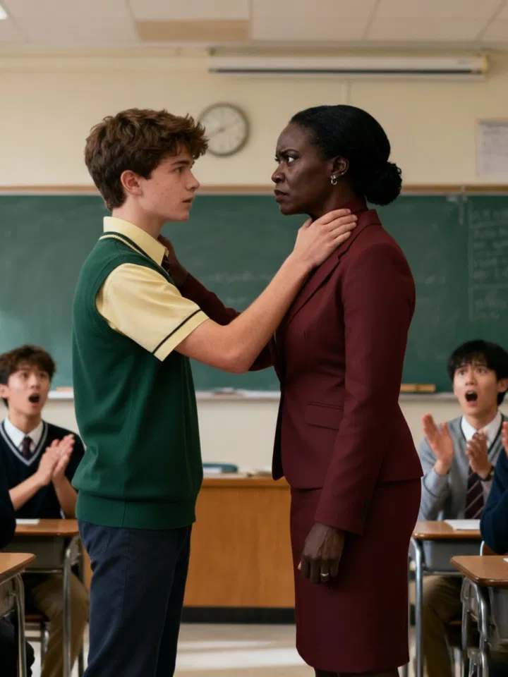 De tl-verlichting op Jefferson High flikkerde toen de laatste les van de dag begon. Mevrouw Naomi Carter, zevenendertig jaar oud, stond vooraan in de klas met haar gebruikelijke kalme aanwezigheid. Ze was pas twee maanden geleden bij de faculteit gekomen en gaf les in Amerikaanse geschiedenis met een onwrikbaar gevoel voor discipline en rechtvaardigheid. De meeste studenten hadden respect voor haar. Maar een kleine groep jongens – zonen van rijke families die dachten dat regels niet voor hen golden – had haar het leven moeilijk gemaakt.