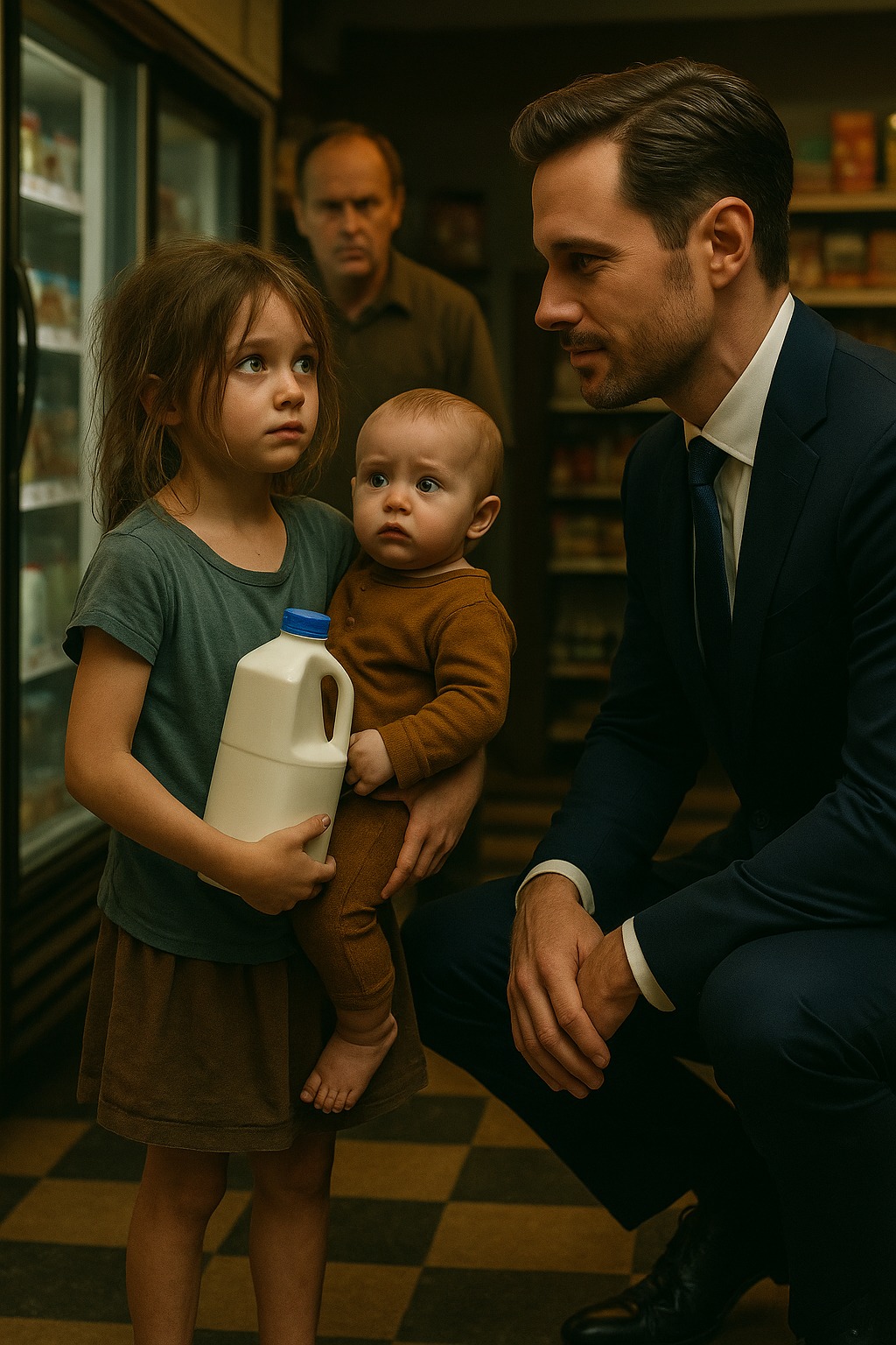 Daniel Mercer, miljardair en oprichter van Mercer Foods, de supermarktketen waar ze in stonden. Gekleed in een onberispelijk pak, bleef hij even staan en voelde meteen de spanning in de kamer. Zijn blik viel al snel op het kleine meisje dat het pak melk vasthield.
