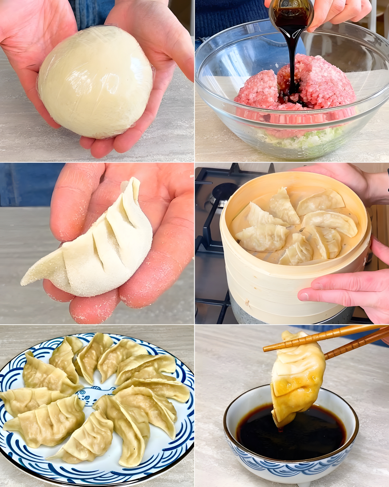 Deze heerlijke gestoomde dumplings zijn gevuld met sappig gehakt, knapperige kool en een smaakvolle sojasausmarinade. Ze zijn perfect als snack, voorgerecht of hoofdgerecht! 😍
