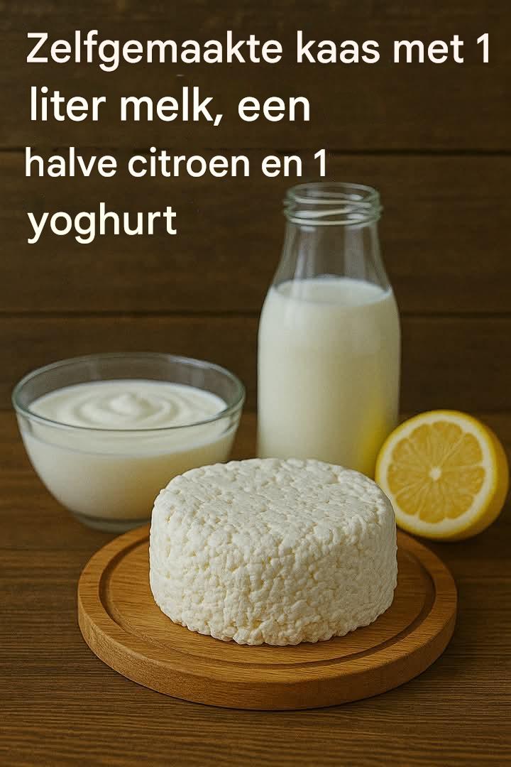 Zelfgemaakte kaas met 1 liter melk, een halve citroen en 1 yoghurt