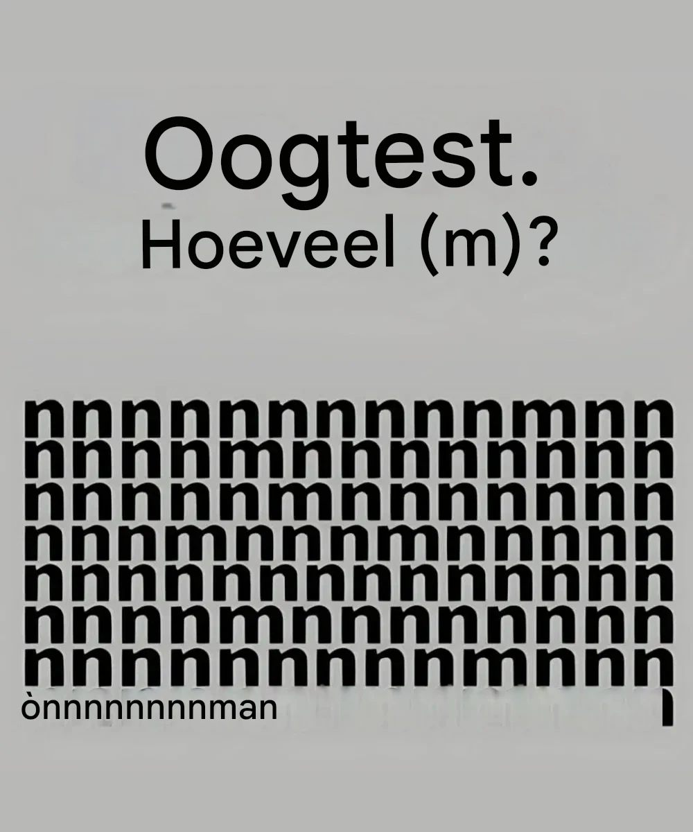 Het internet staat vol met visuele puzzels en hersenkrakers, en een van de nieuwste uitdagingen om ieders aandacht vast te houden is de “oogtest”, waarbij deelnemers moeten opletten hoe vaak de letter “m” voorkomt in een raster gevuld met “n”-en.