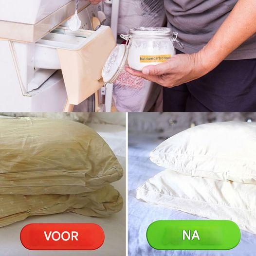 Om de opbouw van gele vlekken, bacteriën en allergenen te voorkomen, wordt aanbevolen om uw kussens elke zes maanden te wassen. Deze vlekken, meestal veroorzaakt door zweetabsorptie, kunnen een broedplaats voor mijten en bacteriën vormen. In plaats van bevlekte kussens weg te gooien, kunt u overwegen om ze grondig te reinigen. Voor kussens die machinewasbaar zijn, kunt u twee tennisballen in de wasmachine stoppen om de vorm en zachtheid van de kussens te behouden.